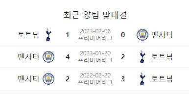 그나마 기대가 되는 점은 토트넘이 맨시티에게 강하다는 점입니다. 최근 역대 상대 전적을 보겠습니다.