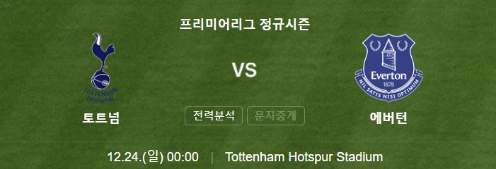 EPL 18라운드 토트넘 에버턴 중계 일정은 한국 시간으로 12월 24일 일요일 00:00입니다. 경기 장소는 토트넘 홈구장이며, 프리미어리그 5위와 16위의 경기가 되겠습니다. 경기 시간이 토요일에서 일요일로 넘어가는 황금 주말 시간대이기 때문에 많은 팬 분들이 경기를 기다릴 것 같습니다.