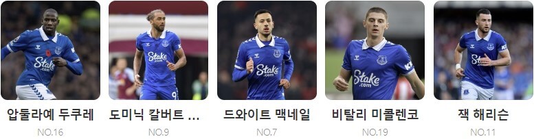 에버턴에서는 압둘라예 두쿠레가 6골 2도움으로 좋은 활약을 보이고 있으며 잭 해리슨이 1골 5도움으로 준수한 모습을 보이고 있습니다. 하지만 공격진들의 부진으로 평균 득점이 1.29점 밖에 되지 않습니다.